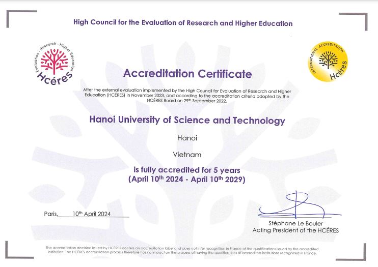 Lần thứ 2 Đại học Bách khoa Hà Nội đạt Chứng nhận Kiểm định Chất lượng từ HCERES