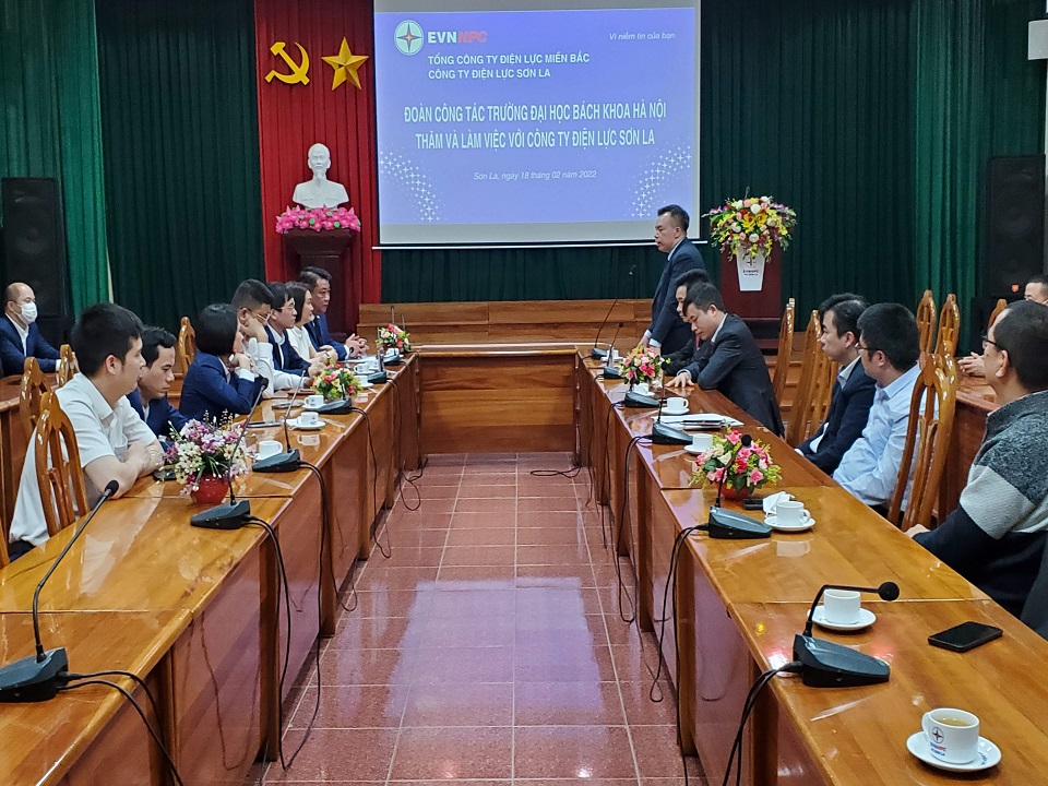 Chiều ngày 18/02/2022, Đoàn Trường Đại học Bách khoa Hà Nội do PGS.TS Nguyễn Tiến Dũng - Viện trưởng Viện đào tạo liên tục làm Trưởng đoàn đã thăm và làm việc với Công ty Điện lực Sơn La (PC Sơn La). Dự và tiếp đoàn có Ông, Bà trong Ban Giám đốc Công ty, lãnh đạo các phòng, ban Công ty.